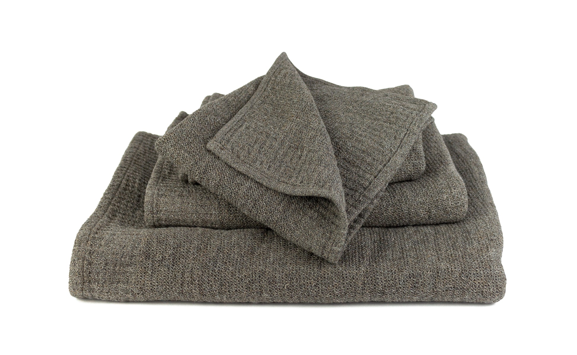 Die mit viel Geschick gefertigten Baumwollhandtücher zeichnen sich aufgrund ihrer wellenförmigen Webstruktur durch eine besonders weiche Textur aus, die der Haptik von Wolle ähnelt. Mit seiner minimalistischen Ästhetik schmiegt sich dieses äußerst saugfähige Handtuch um Ihre Haut und umhüllt Sie mit Komfort. 100 % Baumwolle, hergestellt in Japan.