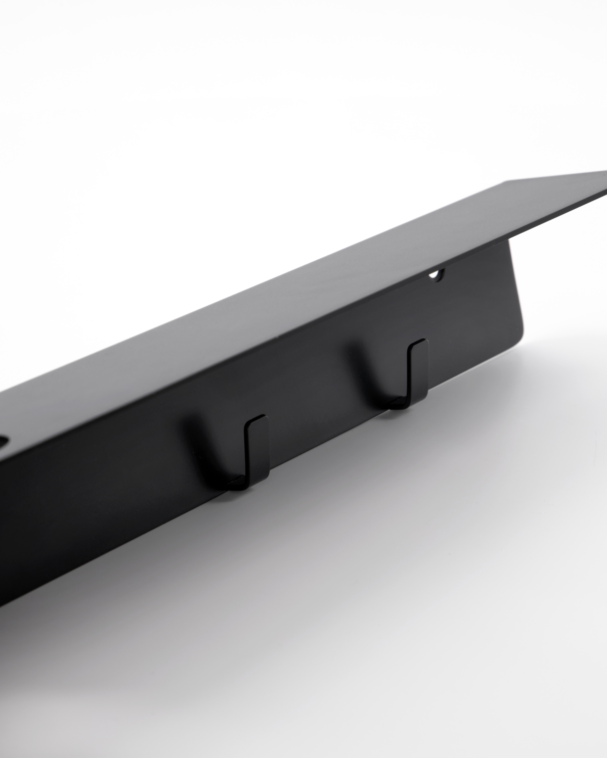 Regal mit Flaschenhalterung und Hakenleiste, Mattschwarzes Finish
