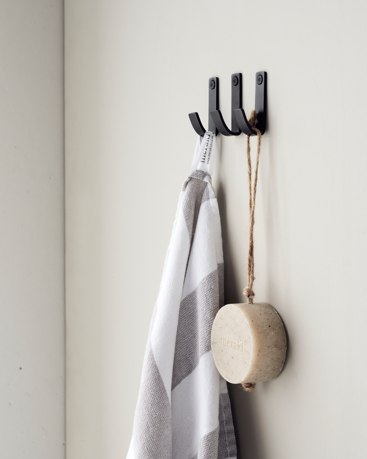 Bringe mit diesem Set aus drei Haken von Meraki ein Gefühl von Wärme in deine Badezimmerdeko. Verwende die Haken aus rostfreiem Edelstahl mit Finish in matt schwarz als einfaches Style-Upgrade und platzsparende Aufbewahrungslösung. Die Haken namens Thapsus sind perfekt für deine Handtücher, aber auch für Körbe mit Beauty- Produkten. Ein kleines Detail, das einen Riesenunterschied macht, wenn es um die gesamte Badezimmerstimmung geht.