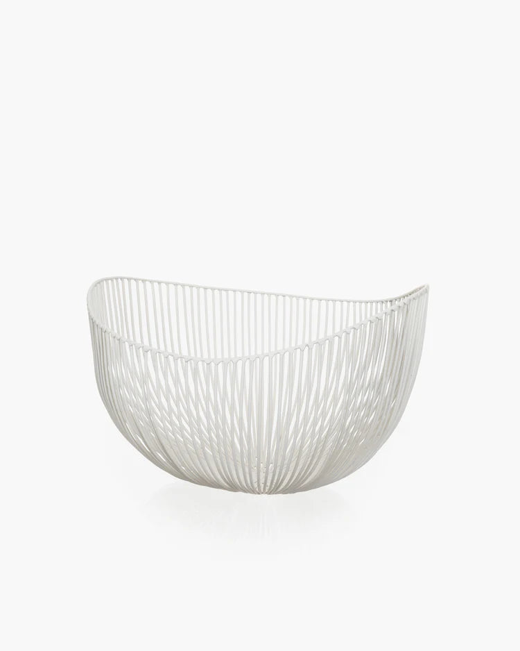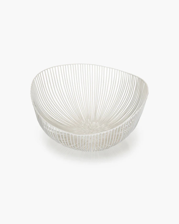 Schöner Metallkorb, Design von Antonino Sciortino in weiß, mit der skulpturalen Form ist er ein echter Hingucker, ob für das Badezimmer als Aufbewahrung oder als Dekoration im restlichen Zuhause. Erhältlich in unterschiedlichen Größen und Farben