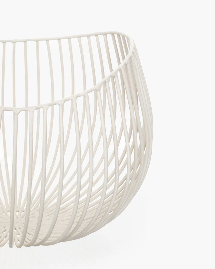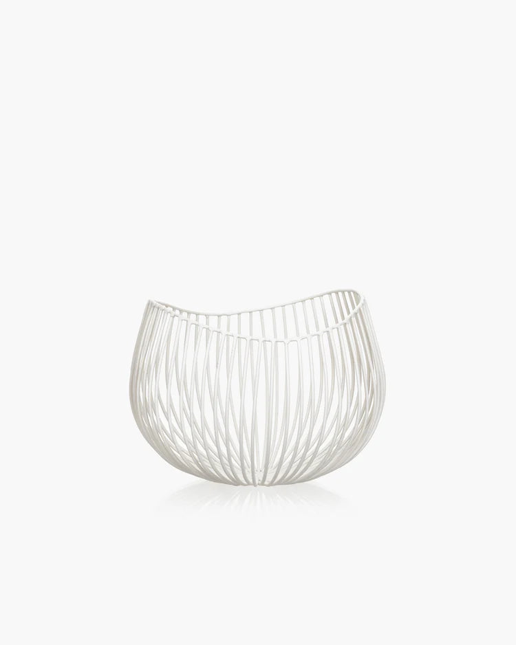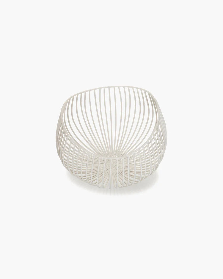 Besonderer Metallkorb von Antonino Sciortino in weiß, mit der skulpturalen Formen ist er ein echter Hingucker ob für das Badezimmer als Aufbewahrung oder als Deko im restlichen Zuhause. Erhältlich in unterschiedlichen Größen und Farben