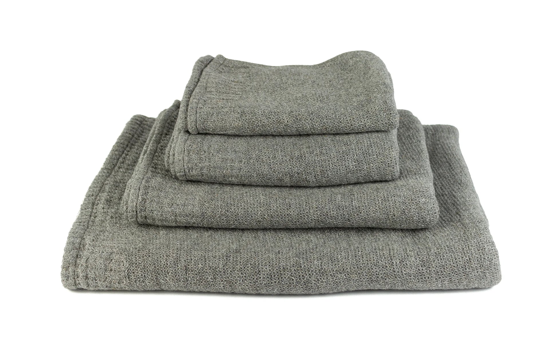 Die mit viel Geschick gefertigten Baumwollhandtücher zeichnen sich aufgrund ihrer wellenförmigen Webstruktur durch eine besonders weiche Textur aus, die der Haptik von Wolle ähnelt. Mit seiner minimalistischen Ästhetik schmiegt sich dieses äußerst saugfähige Handtuch um Ihre Haut und umhüllt Sie mit Komfort. 100 % Baumwolle, hergestellt in Japan.